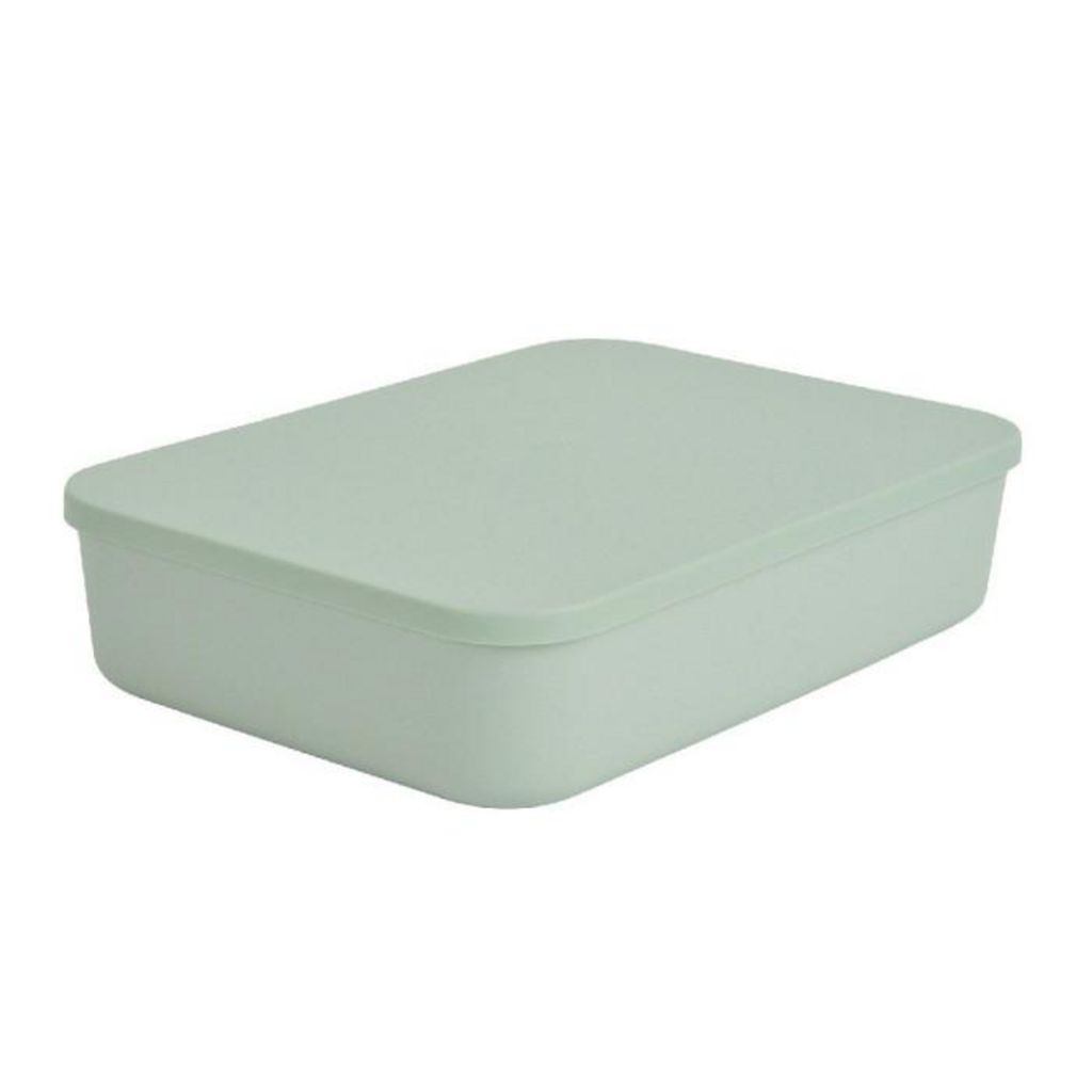 Informations Techniques : Dimensions : L. 35,5 x l. 25,5 x H. 8 cm Matière : Plastique Spécificités : Pratique & Utile Boite de rangement  Avec couvercle Design uni opaque Forme rectangulaire Capacité : 5,5 L  Poids : 0,35 kg Couleur : Sauge