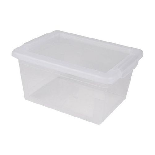 Informations Techniques : Dimensions : L. 20 x l. 16 x H. 10 cm Matière : Plastique Spécificités : Pratique & Astucieux Boîte de Rangement Forme Rectangulaire Avec Clips Contenance : 2 L Couleur : Transparent