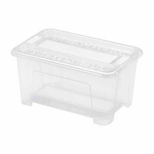 Informations Techniques : Dimensions : L. 28 x l. 18,5 x H. 14 cm Matière : Polypropylène Spécificités : Pratique & Utile Boîte de Rangement Forme Rectangulaire Contenance : 4,5 L Couleur : Transparent