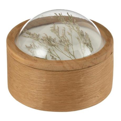 Informations Techniques : Dimensions : D. 16,8 x H. 13 cm Matières : Bois (Pin & Contreplaqué) & Verre Spécificités : Tendance & Utile Boîte déco ronde Avec couvercle dôme Vendue à l'unité Poids : 0,31 kg Couleur : Naturel