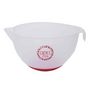 Informations Techniques : Dimensions : D. 23,5 cm Matières : Polypropylène & TPR Spécificités : Pratique & Utile Bol Mélangeur Forme Ronde Antidérapant Facile à Utiliser grâce à la Poignée Contenance : 3 L Poids : 0,19 kg Couleur : Transparent & Rouge