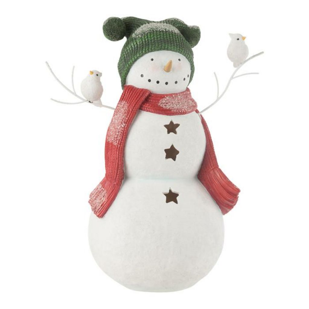 Informations Techniques : Dimensions : L. 43,5 x l. 26 x H. 50 cm Matières : 55% Chaux (Poudre) & 45% Résine Spécificités : Hivernal & Festif Bonhomme de neige déco Avec petits oiseaux Vendu à l'unité Poids : 2,7 kg Couleur : Multicolore