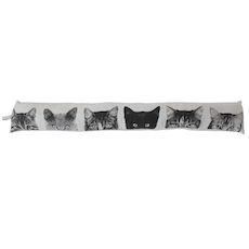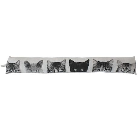 Informations Techniques : Dimensions : L. 90 x H. 15 cm Matières : 80% Coton Recyclé & 20% Polyester Spécificités : Original & Utile Boudin de porte déco Imprimé chats recto/verso Tissu chambray Couleur : Écru