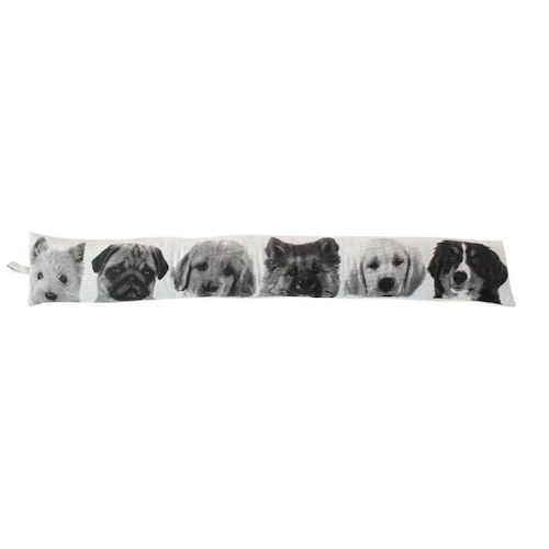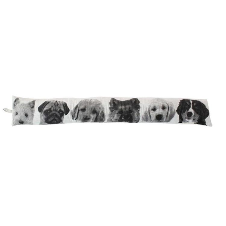 Informations Techniques : Dimensions : L. 90 x H. 15 cm Matières : 80% Coton Recyclé & 20% Polyester Spécificités : Original & Utile Boudin de porte déco Imprimé chiens recto/verso Tissu chambray Couleur : Écru