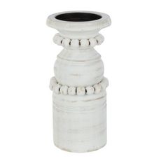 Informations Techniques : Dimensions : L. 10 x l. 10 x H. 20 cm Matières : 80% Bois (Pin) & 20% Métal Spécificités : Pratique & Tendance Bougeoir déco Effet patiné Vendu à l'unité Forme ronde Poids : 0,5 kg Couleur : Blanc