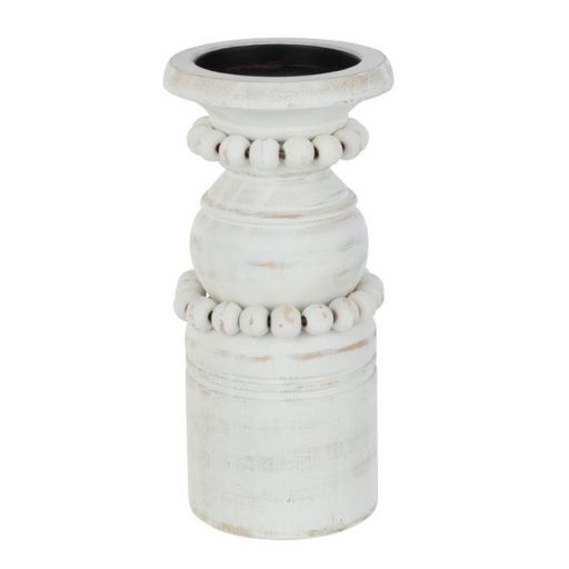 Bougeoir Déco en Pin Pila 20cm Blanc