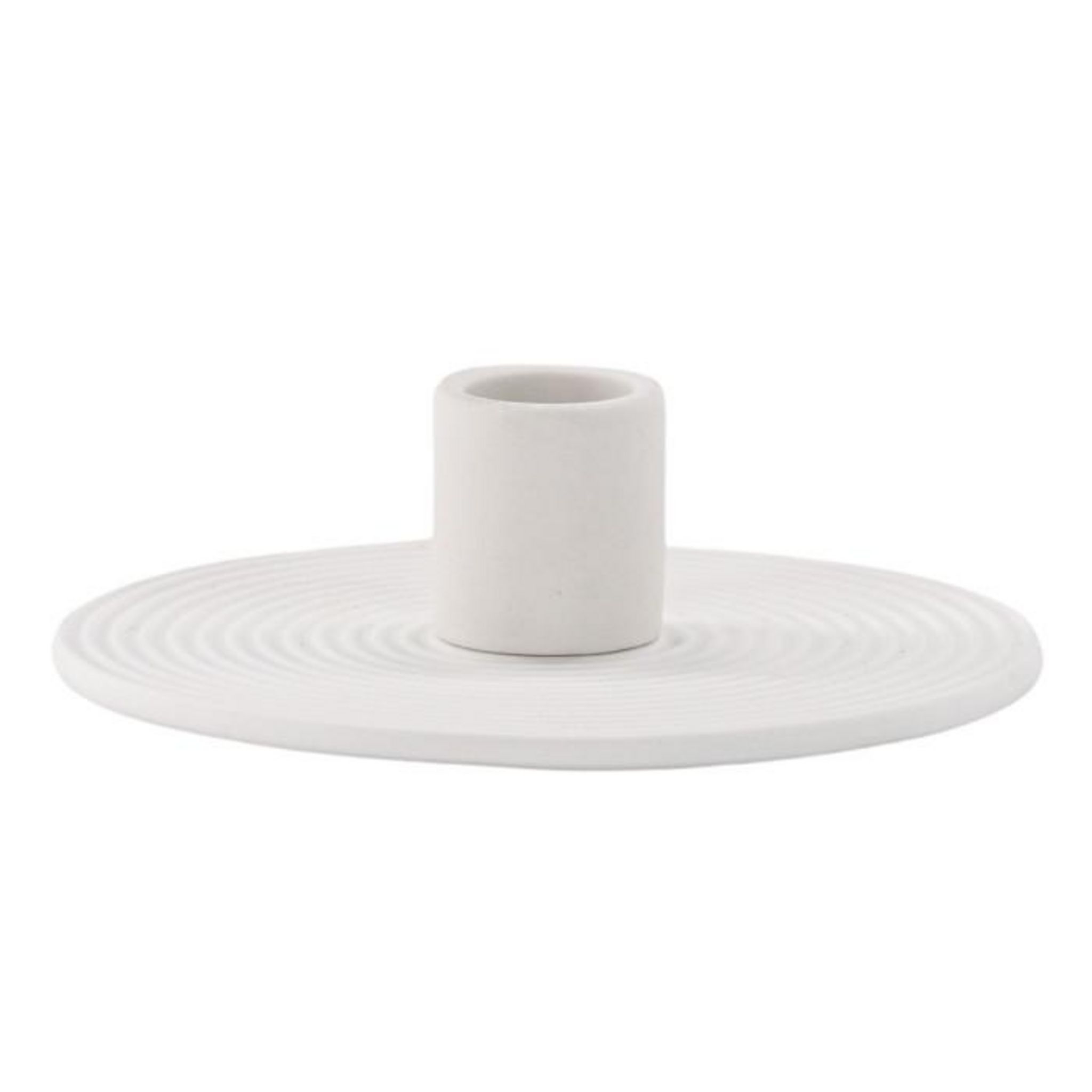 Informations Techniques : Dimensions : D. 12 x H. 4 cm Matière : Argile Spécificités : Moderne & Élégant Bougeoir rond Design strié Poids : 0,15 kg Couleur : Blanc