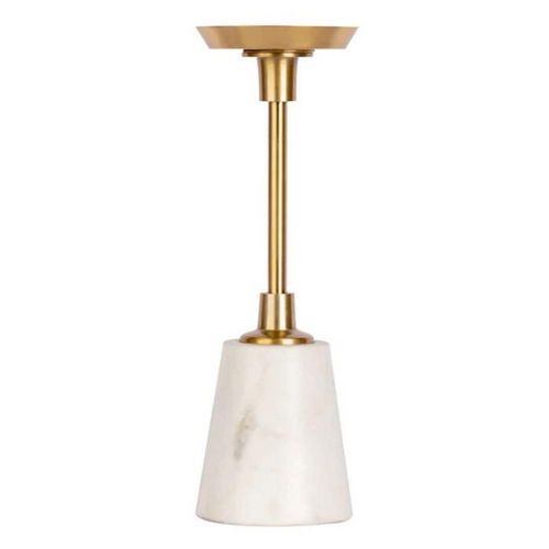 Informations Techniques : Dimensions : D. 10 x H. 30 cm Matières : Socle : Marbre Plateau : Aluminium Spécificités : Pratique & Utile Bougeoir Design Forme Ronde Entretien & Fabrication : Type de Fabrication : Fait Main Poids : 1,98 kg Couleur : Blanc & Or