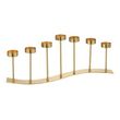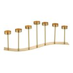 Informations Techniques : Dimensions : L. 48 x l. 10 x H. 48 cm Matière : 100% Métal Spécificités : Déco & Chic Bougeoir 7 bougies Design courbé Bougies non incluse Poids : 0,75 kg Couleur : Or