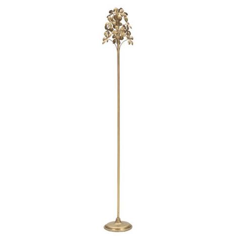 Informations Techniques : Dimensions : L. 17 x l. 17 x H. 118 cm Emplacement bougie : D. 2 cm Matière : Métal Spécificités : Déco & Élégant Bougeoir design floral Pour bougie bâton Poids : 1,4 kg Couleur : Or