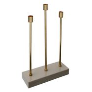 Informations Techniques : Dimensions : L. 26 x l. 9 x H. 39,5 cm Matières : 100% Fer Spécificités : Résistant & Robuste Bougeoir Design 3 Têtes Forme Ronde Style Élégant Fabrication & Montage : Certification BSCI (Business Social Compliance Initiative) Fait Main Poids : 0,69 kg Couleur : Taupe & Or