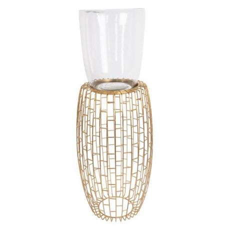 Informations Techniques : Dimensions : D. 28 x H. 73 cm Matières : Fer & Verre Spécificités : Moderne & Tendance Bougeoir déco Forme Ronde Peut également être utilisé comme lanterne Fabrication & Entretien : Fait Main Facile à Entretenir Poids : 2,88 kg Couleur : Or