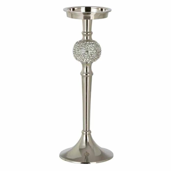 Informations Techniques : Dimensions : D. 11 x H. 31 cm Matière : Aluminium Spécificités : Tendance & Déco Bougeoir Déco Forme Ronde A Poser Design Sphère avec Diamants Poids : 0,64 kg Couleur : Argent