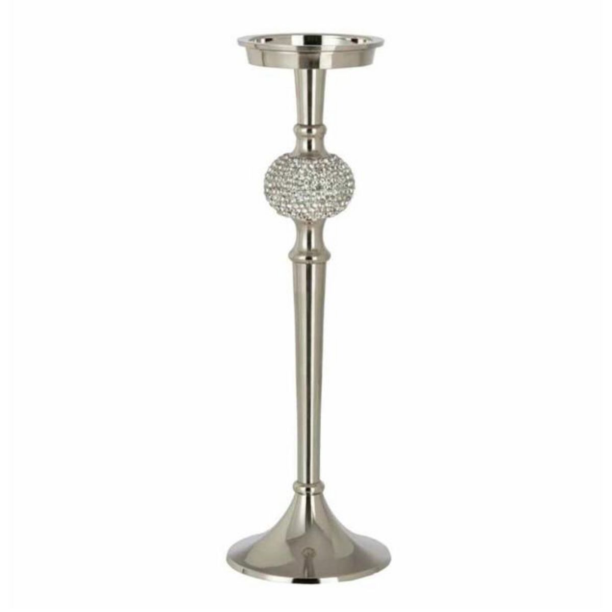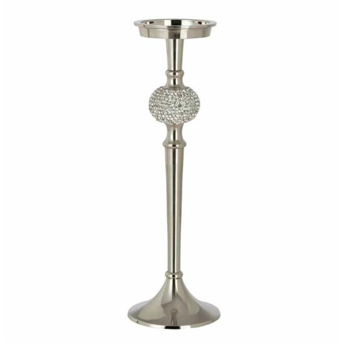 Informations Techniques : Dimensions : D. 11,5 x H. 36 cm Matière : Aluminium Spécificités : Tendance & Déco Bougeoir Déco Forme Ronde A Poser Design Sphère avec Diamants Poids : 0,69 kg Couleur : Argent