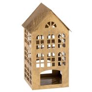 Informations Techniques : Dimensions : L. 17 x l. 17,5 x H. 32 cm Matières : Métal Spécificités : Original & Pratique Forme de Maison Bougie non incluse Facile d'entretien & d'utilisation Poids : 0,86 kg Couleur : Or