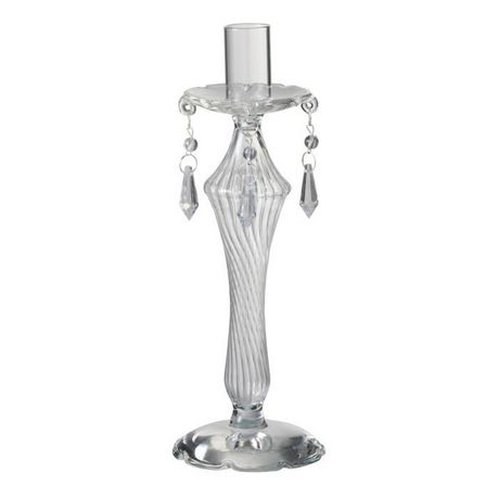 Informations Techniques : Dimensions : D. 8,5 x H. 24 cm Matière : 100% Aluminium Spécificités : Élégant & Déco Bougeoir design Avec perles Poids : 0,24 kg Couleur : Transparent