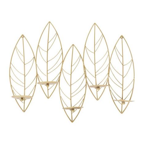 Bougeoir Mural en Métal Feuilles 66cm Or