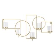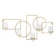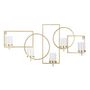 Ce Bougeoir Mural en Métal Marie 70cm Or présente un design géométrique moderne, composé d'un agencement harmonieux de cercles et de rectangles. Il intègre cinq contenants pour bougie en verre, offrant une solution élégante pour illuminer votre espace. Cette pièce décorative apporte une touche contemporaine et raffinée à votre intérieur, créant un jeu de lumière captivant !