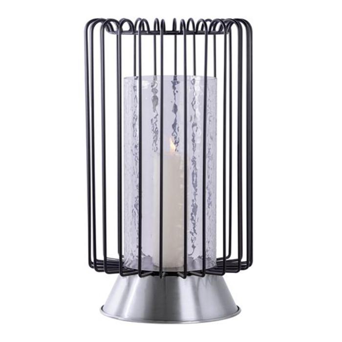 Informations Techniques : Dimensions : D. 22,5 x H. 40 cm Matières : Fer & Verre Martelé Spécificités : Moderne & Tendance Bougeoir Déco Forme Ronde Finition Luxueuse Fait à la Main Poids : 2,01 kg Couleur : Noir & Argent