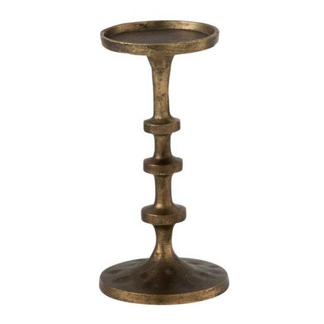 Informations Techniques : Dimensions : D. 13 x H. 25 cm Matière : 100% Aluminium Spécificités : Vintage & Déco Forme ronde Bougie non incluse Poids : 0,6 kg Couleur : Bronze