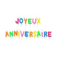 Informations Techniques : Dimensions : L. 1,8 x l. 0,5 x H. 4,5 cm Matières : Cire & Paraffine Spécificités : Pratique & Utile Bougie 18 Lettres Joyeux Anniversaire Couleur : Multicolore