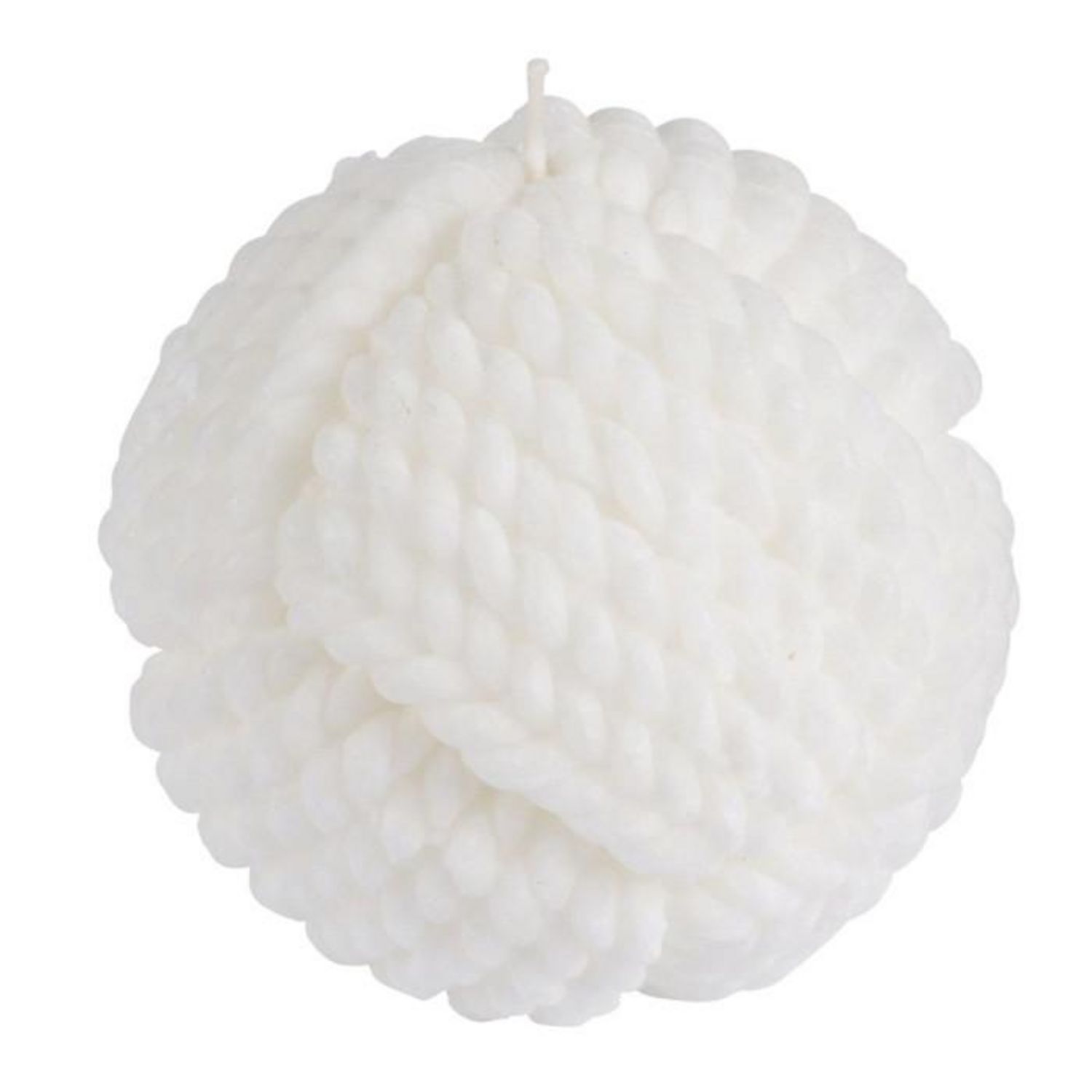 Informations Techniques : Dimensions : D. 9.5 x H. 9 cm Matière : Parrafine Spécificités : Pratique & Design Forme boule Effet cordage Poids : 0.39 kg Couleur : Blanc