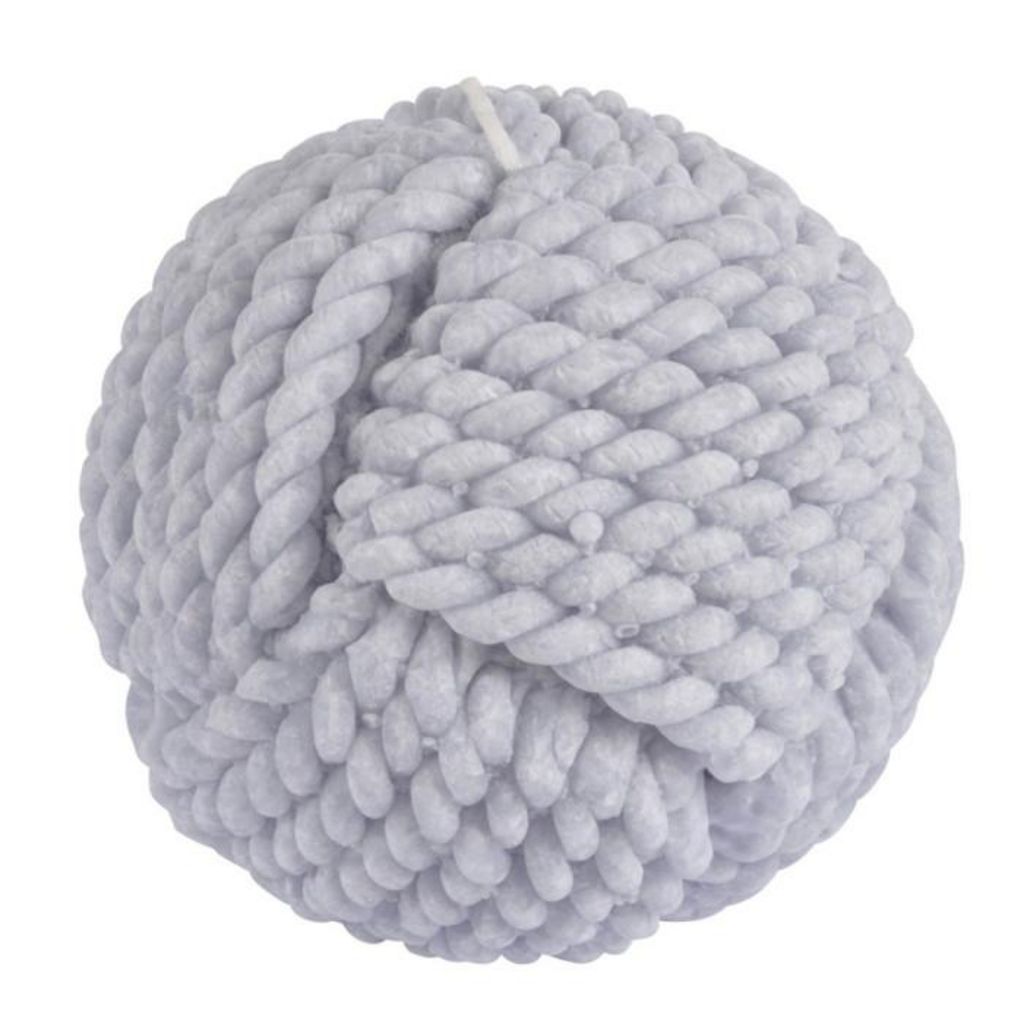 Informations Techniques : Dimensions : D. 9.5 x H. 9 cm Matière : Parrafine Spécificités : Pratique & Design Forme boule Effet cordage Poids : 0.39 kg Couleur : Bleu Clair