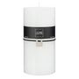 Informations Techniques : Dimensions : D. 10 x H. 20 cm Matière : Paraffine Spécificités : Tendance & Pratique Bougie déco Forme cylindrique Durée de combustion : 140 heures Poids : 1,32 kg Couleur : Blanc