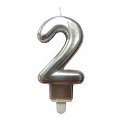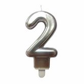 Bougie d'Anniversaire Chiffre 2 7cm Argent