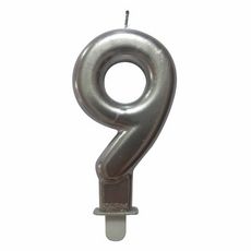 Bougie d'Anniversaire Chiffre 9 7cm Argent