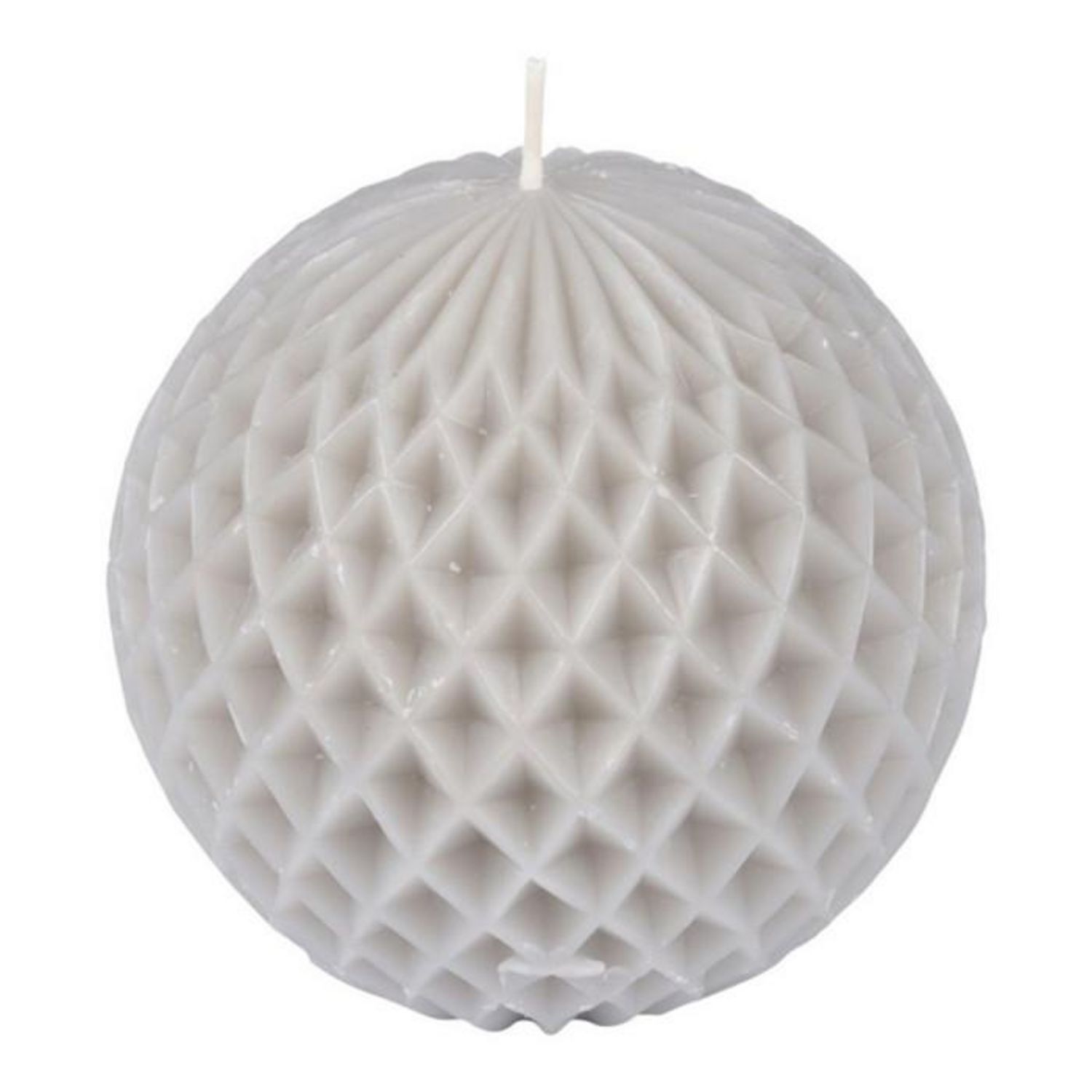 Informations Techniques : Dimensions : D. 9,2 x H. 8,7 cm Matière : Cire Spécificités : Pratique & Design Bougie Déco Forme Boule Couleur : Gris