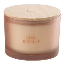 Informations Techniques : Dimensions : D. 11,5 x H. 10 cm Matières : Cire (Soja, Palmier & Noix de coco) & Paraffine Spécificités : Déco & Utile Bougie parfumée Avec couvercle Vendue à l'unité Senteur : Rose Rêveuse Type de fragrance : Florale Durée de combustion : 28 heures Poids : 0,98