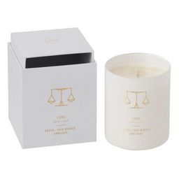 Informations Techniques : Dimensions : D. 9,2 x H. 10,4 cm Matière : Paraffine Spécificités : Tendance & Pratique Bougie Déco Forme Ronde Design Astrologique Signe du Zodiaque : Balance Senteur : Sapphire Amber Tea Type de Fragance : Floral Durée de Combustion : 50 heures Poids : 0,565 kg Couleur