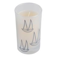 Informations Techniques : Dimensions : D. 5.8 x H. 10 cm Matières : Paraffine & Verre Spécificités : Pratique & Design Parfum brise marine Motifs bateaux Facile d'utilisation Poids : 0.38 kg Couleur : Blanc