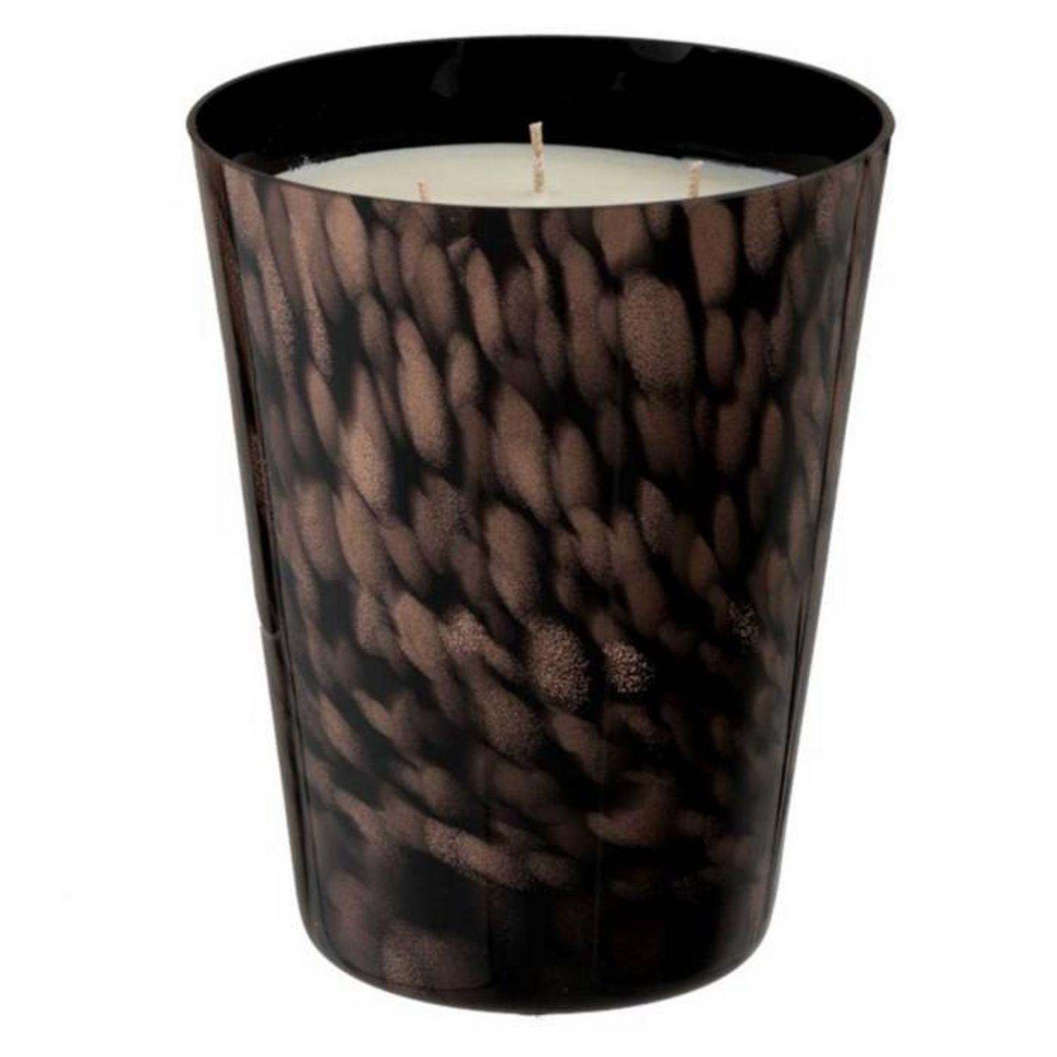 Informations Techniques : Dimensions : L. 15,5 x l. 15,5 x H. 20 cm Matière : Cire Spécificités : Tendance & Moderne Bougie Parfumée Forme Ronde A Motifs Durée de combustion : 95 heures Facile d'entretien & d'utilisation Poids : 2,58 kg Couleur : Noir & Or
