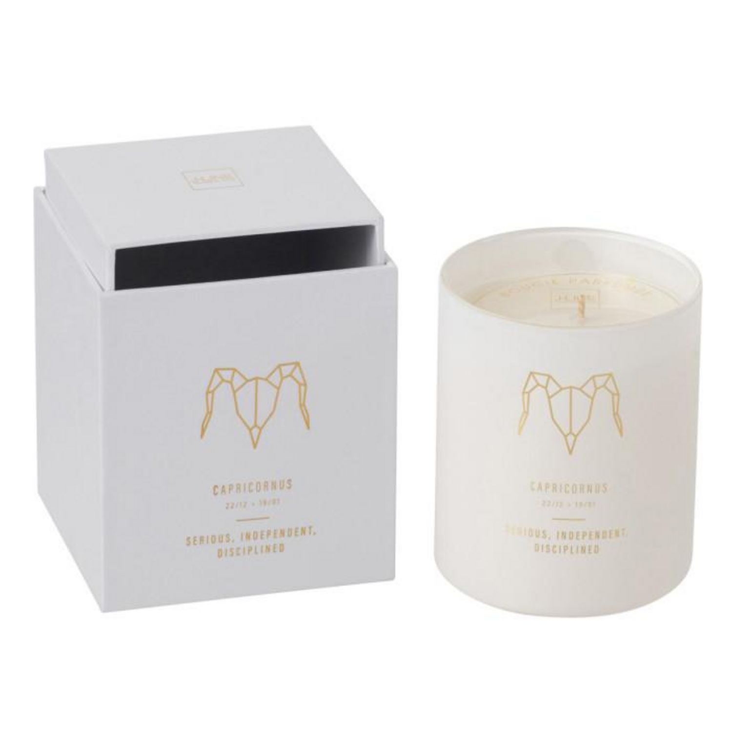 Informations Techniques : Dimensions : D. 9,2 x H. 10,4 cm Matière : Paraffine Spécificités : Tendance & Pratique Bougie Déco Forme Ronde Design Astrologique Signe du Zodiaque : Capricorne Senteur : Sapphire Amber Tea Type de Fragance : Floral Durée de Combustion : 50 heures Poids : 0,565 kg Coule