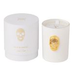 Informations Techniques : Dimensions : L. 10 x l. 9,5 x H. 11 cm Matières : Cire de Palme, Paraffine & Verre Spécificités : Déco & Originale Bougie parfumée design Avec boîte ronde Motif crâne doré en relief Vendue à l'unité Senteur : White floral tonk Type de fragrance : Florale Durée de combustio