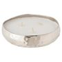 Informations Techniques : Dimensions : L. 28,5 x l. 28,5 x H. 6 cm Matières : Cire & Métal Spécificités : Tendance & Design Bougie Parfumée Forme Ronde Senteur : Sugar Citrus Type de Fragrance : Citronné Durée de Combustion : 40 heures Poids : 3,01 kg Couleur : Argent