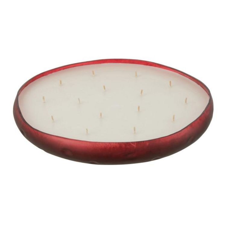Informations Techniques : Dimensions : D. 37 x H. 5 cm Matières : Cire & Verre Spécificités : Déco & Utile Bougie parfumée Avec boîte Design plat Forme ronde Senteur : Oud and amber Type de fragrance : Boisée Durée de combustion : 35 heures Poids : 4,7 kg Couleur : Rouge