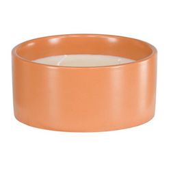 Informations Techniques : Dimensions : D. 13 x H. 6 cm Matières : 25 % Paraffine, 25% Cire de Soja & 50% Céramique Spécificités : Pratique & Tendance Bougie parfumée 3 mèches Revêtement : glaçage Forme ronde Senteur : Marine Poids : 0,75 kg Couleur : Orange