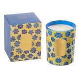Informations Techniques : Dimensions : D. 10,5 x H. 13,5 cm Matière : Cire Spécificités : Déco & Utile Bougie parfumée Imprimé fleuri Senteur : White Musk Violet Type de fragrance : Florale Durée de combustion : 70 heures Poids : 1,08 kg Couleur : Bleu & Jaune
