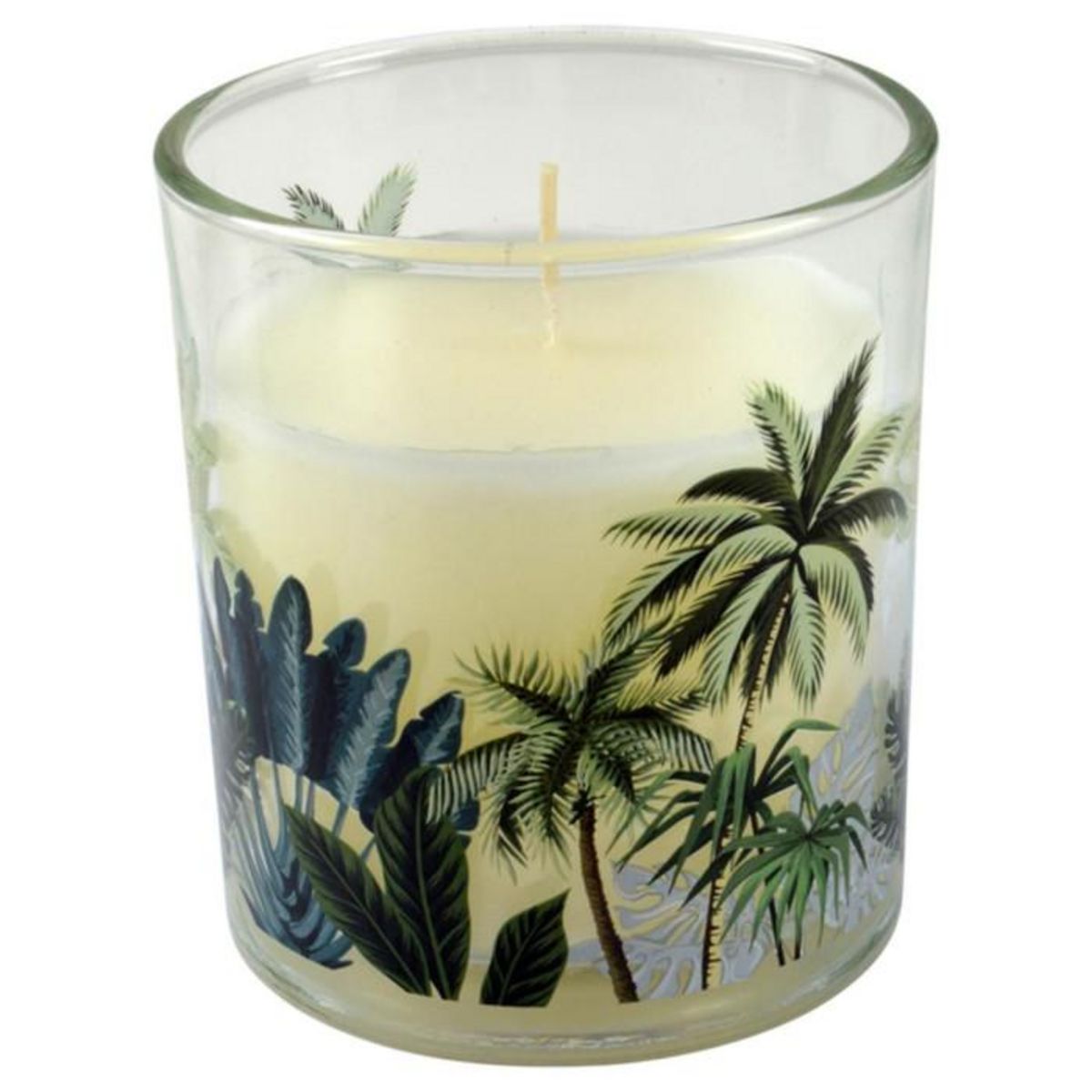 Informations Techniques : Dimensions : D. 9 x H. 10 cm Matières : Verre & Cire Spécificités : Chic & Tendance Bougie Verrine Parfumée Forme Ronde Motif Végétal Senteur : Douceur Exotique Couleur : Beige