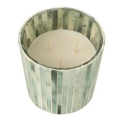 Informations Techniques : Dimensions : D. 12 x H. 11,5 cm Matières : Cire & Verre Spécificités : Déco & Utile Bougie parfumée Design rayé Avec boîte Vendue à l'unité Senteur : Seaside Bliss Durée de combustion : 45 heures Poids : 1,08 kg Couleur : Bleu Clair