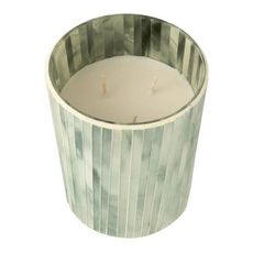 Informations Techniques : Dimensions : D. 12,5 x H. 15,5 cm Matières : Cire & Verre Spécificités : Déco & Utile Bougie parfumée Design rayé Avec boîte Vendue à l'unité Senteur : Seaside Bliss Durée de combustion : 55 heures Poids : 1,56 kg Couleur : Bleu Clair