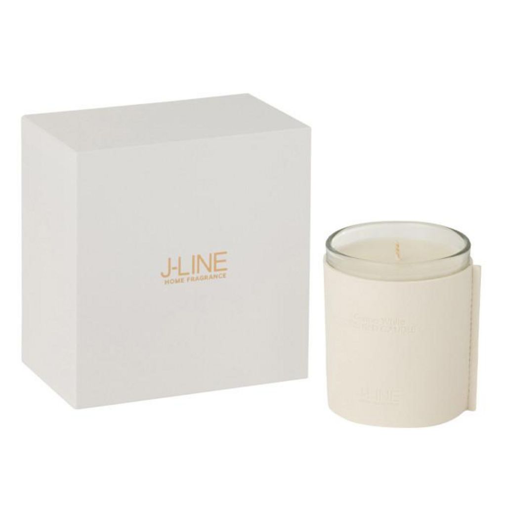 Informations Techniques : Dimensions : L. 14 x l. 9 x H. 14,5 cm Matières : Paraffine, Cire & Verre Spécificités : Élégante & Tendance Bougie parfumée déco Design effet cuir Boite incluse Vendue à l'unité Senteur : Grape white Type de fragrance : Florale Durée de combustion : 40 heures Poids : 0,59