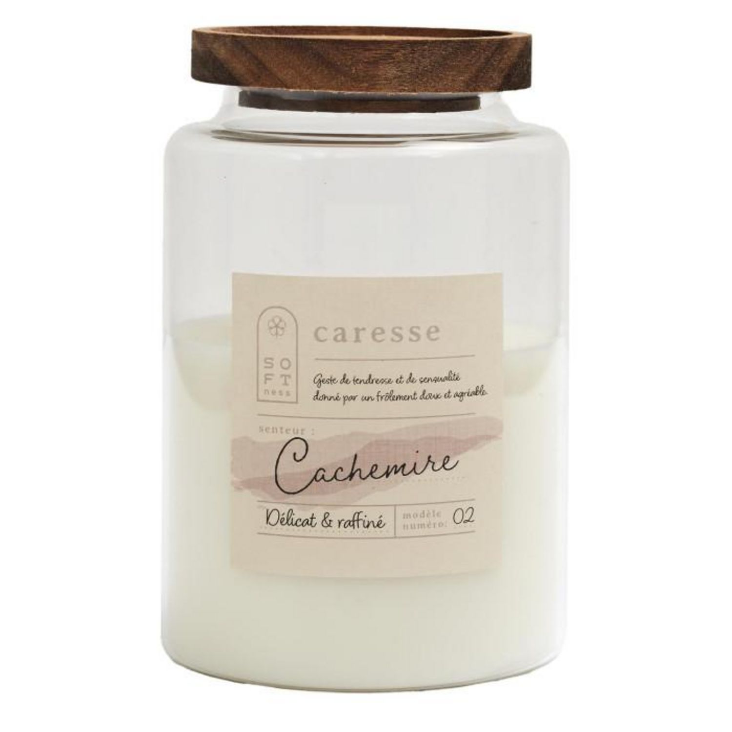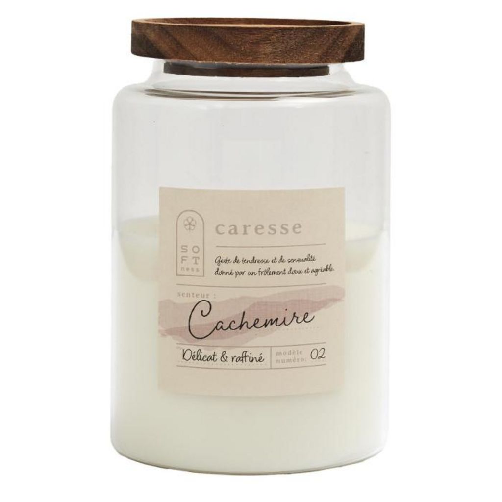 Informations Techniques : Dimensions : L. 11 x l. 11 x H. 16,5 cm Matières : 50% Verre, 40% Cire de Paraffine & 10% Acacia Spécificités : Délicat & Raffiné Bougie parfumée Avec couvercle Mèche en coton Forme ronde Senteur : Cachemire Contenance : 650 g Poids : 0,91kg Couleur : Blanc