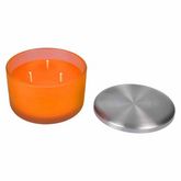 Informations Techniques : Dimensions : D. 13 x H. 8,5 cm Matière : Cire Spécificités : Pratique & Design Bougie Parfumée Bougie en Verrine Avec Couvercle Forme Ronde Senteur : Mandarine Orientale Couleur : Orange