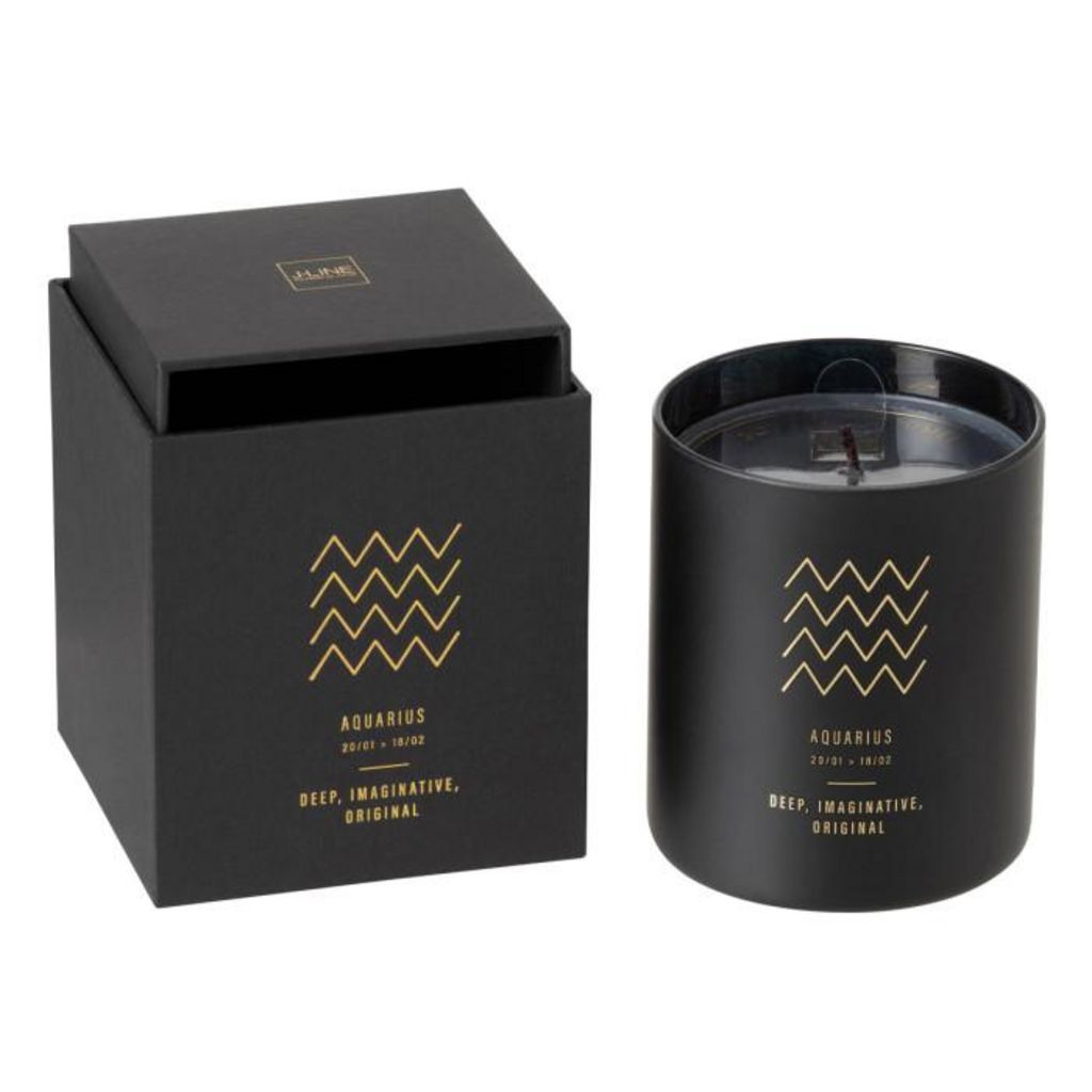 Informations Techniques : Dimensions : D. 9,2 x H. 10,4 cm Matière : Paraffine Spécificités : Tendance & Pratique Bougie Déco Forme Ronde Design Astrologique Signe du Zodiaque : Verseau Senteur : Rainbow Reef Type de Fragance : Mélange Frais Durée de Combustion : 50 heures Poids : 0,565 kg Couleur