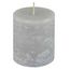 Informations Techniques : Dimensions : D. 6,8 x H. 7,5 cm Matières : Cire Spécificités : Chic & Tendance Bougie Pilier Déco Forme Ronde Non Parfumée A Poser Couleur : Gris