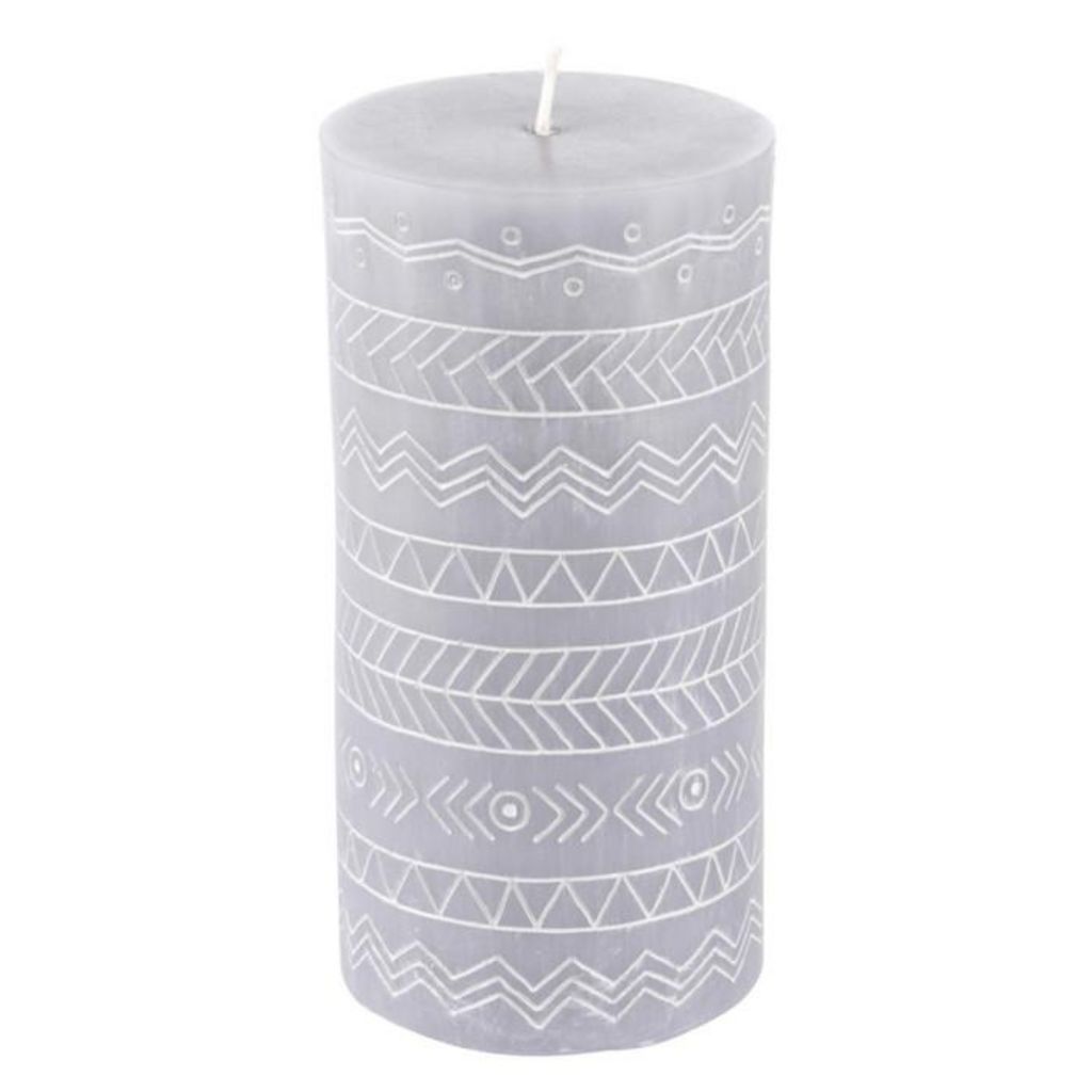 Bougie Pilier Embossée Graphic Ethnic 13cm Gris Clair